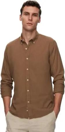 Leinenoptik Hemd Herren Langarm Slim Fit, 100% Baumwolle Atmungsaktiv Freizeithemd Herren, Leichte Kleidung Herren, Schickes Männer Hemd, Sommer Shirt, 6 Farboptionen, S M L XL X | Braun - s
