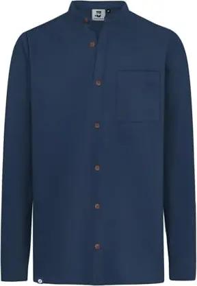 Blend Herren Freizeithemd Hemd Stehkragen Brusttaschen Regular Fit Hochwertiges Leinen Leinenhemd, Größe:S, Farbe:Dress Blues (194024)
