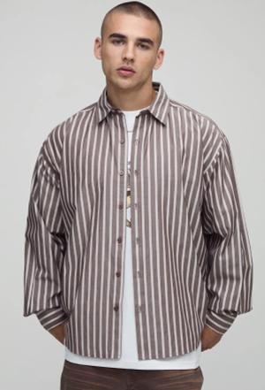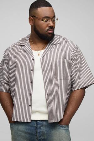 Plus kastiges gestreiftes Oversize Hemd - Braun - 3XL, Braun