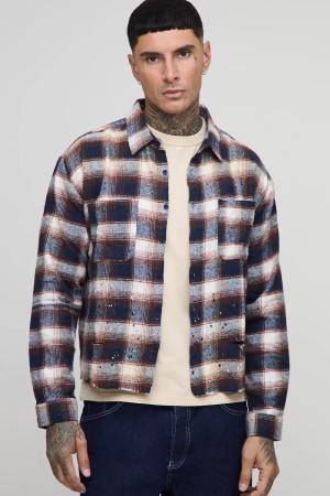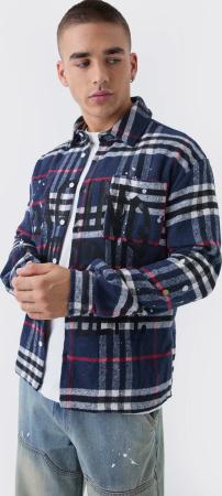 Kariertes Oversize Hemd mit Farbspritzern - Blau - M, Blau