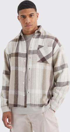 Bouclee-Overshirt mit Fischgräten-Print - Taupe - L, Taupe