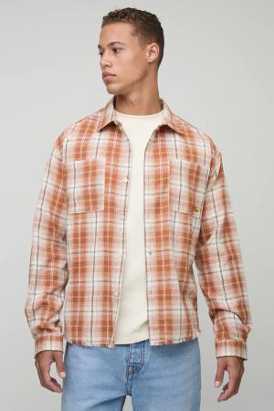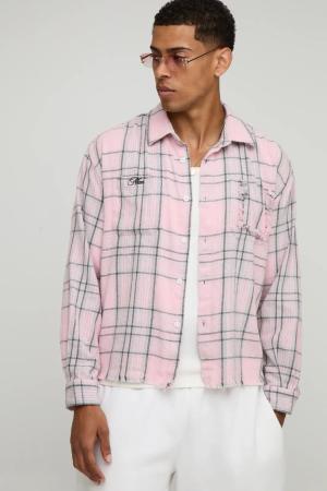 Tall zerrissenes kariertes Oversize Hemd mit rohem Saum - Rot - 2XL, Rot