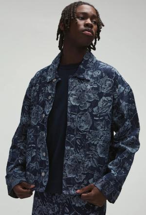 Oversize florales Jacquard-Hemd - Indigo - S, Indigo