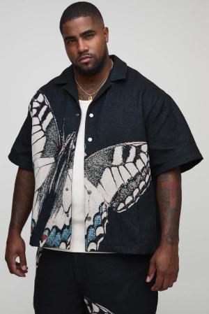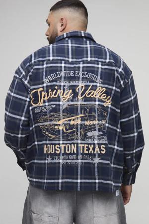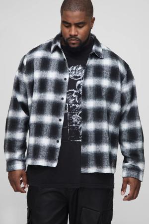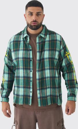 Plus kariertes Overshirt mit Aufnäher - Schwarz - 2XL, Schwarz