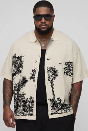 Plus lockeres Jacquard-Hemd - Ecru - 2XL, Ecru