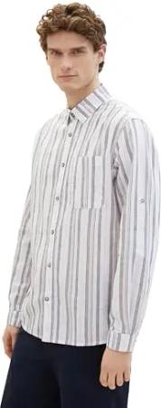 Herren Regular Fit Leinen Hemd mit Brusttasche, 34723 - White Multicolor Stripe, XXL