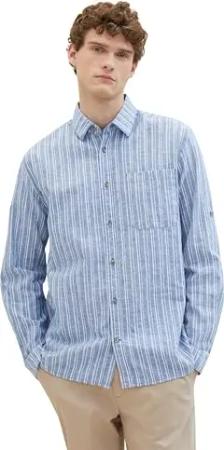 Herren Regular Fit Leinen Hemd mit Brusttasche, 34724 - Mid Blue Stripe, M