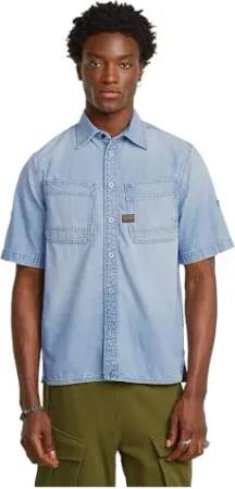 Herren Double Pocket Relaxed Hemd, Blau (Rinsed D24603-D558-082), M