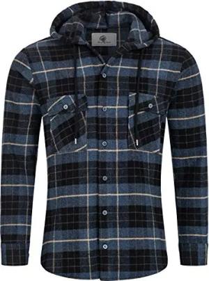 Herren Hemd Kariert Kapuzenhemd Karohemd Herrenhemd Flanell Hemden Holzfällerhemd Übergangsjacke Langarm Kariert Winter H-334 Blau S