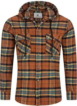 Herren Hemd Kariert Kapuzenhemd Karohemd Herrenhemd Flanell Hemden Holzfällerhemd Übergangsjacke Langarm Kariert Winter H-328 Camel M