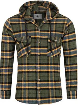 Herren Hemd Kariert Kapuzenhemd Karohemd Herrenhemd Flanell Hemden Holzfällerhemd Übergangsjacke Langarm Kariert Winter H-335 Grün 2XL