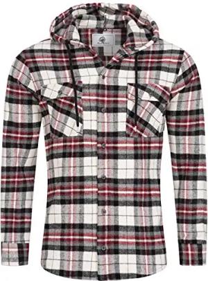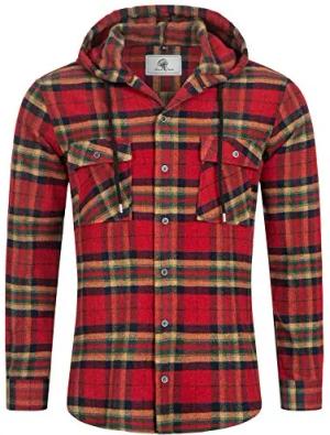 Herren Hemd Kariert Kapuzenhemd Karohemd Herrenhemd Flanell Hemden Holzfällerhemd Übergangsjacke Langarm Kariert Winter H-328 Rot S