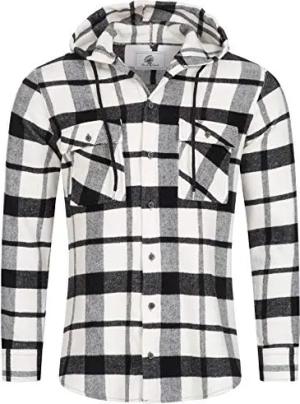 Herren Hemd Kariert Kapuzenhemd Karohemd Herrenhemd Flanell Hemden Holzfällerhemd Übergangsjacke Langarm Kariert Winter H-257 Weiß 4XL