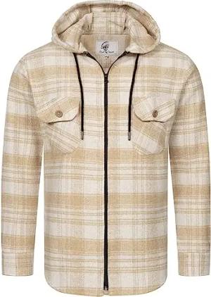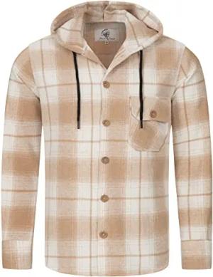 Herren Hemd Kariert Kapuzenhemd Karohemd Herrenhemd Flanell Hemden Holzfällerhemd Übergangsjacke Langarm Kariert Winter H-326 Beige 2XL