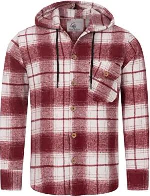 Herren Hemd Kariert Kapuzenhemd Karohemd Herrenhemd Flanell Hemden Holzfällerhemd Übergangsjacke Langarm Kariert Winter H-326 Weinrot M