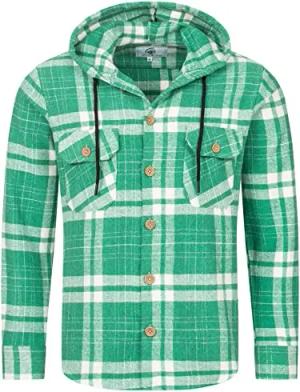 Herren Hemd Kariert Kapuzenhemd Karohemd Herrenhemd Flanell Hemden Holzfällerhemd Übergangsjacke Langarm Kariert Winter H-328 Grün 3XL