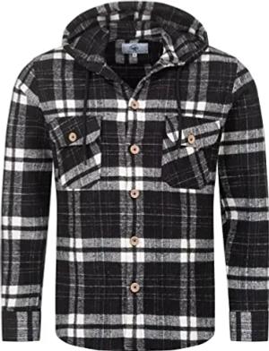 Herren Hemd Kariert Kapuzenhemd Karohemd Herrenhemd Flanell Hemden Holzfällerhemd Übergangsjacke Langarm Kariert Winter H-328 Schwarz M