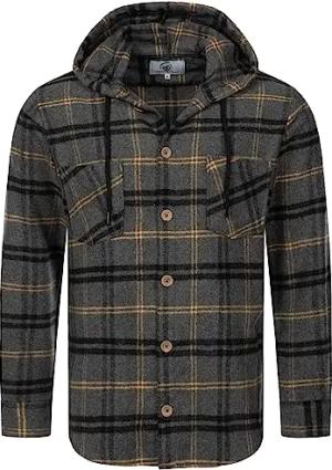 Herren Hemd Kariert Kapuzenhemd Karohemd Herrenhemd Flanell Hemden Holzfällerhemd Übergangsjacke Langarm Kariert Winter H-326 Grau S