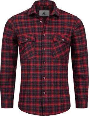Herren Hemd Kariertes Flanellhemd Karohemd Herrenhemd Flanell Hemden Holzfällerhemd Übergangsjacke Langarm Kariert Winter H-325 Rot 2XL