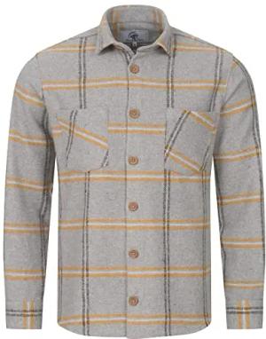 Herren Winterjacke Karierte Flanelljacke Gefüttert Holzfällerjacke Holzfällerhemd Kragen Übergangsjacke Kariert Thermojacke H-338 Gelb S