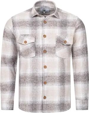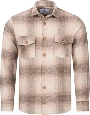Herren Hemd Kariertes Flanellhemd Karohemd Herrenhemd Flanell Hemden Holzfällerhemd Übergangsjacke Langarm Kariert Winter H-324 Beige S