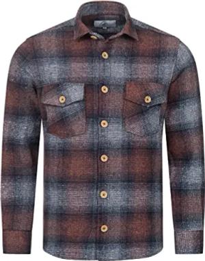Herren Hemd Kariertes Flanellhemd Karohemd Herrenhemd Flanell Hemden Holzfällerhemd Übergangsjacke Langarm Kariert Winter H-329 Braun 4XL