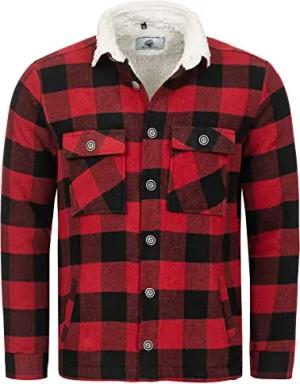Herren Winterjacke Karierte Flanelljacke Gefüttert Holzfällerjacke Holzfällerhemd Kragen Teddyfutter Kariert Thermojacke H-264 Rot S