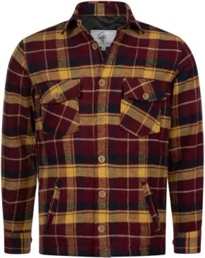 Herren Winterjacke Karierte Flanelljacke Gefüttert Holzfällerjacke Holzfällerhemd Kragen Übergangsjacke Kariert Thermojacke H-337 Weinrot S