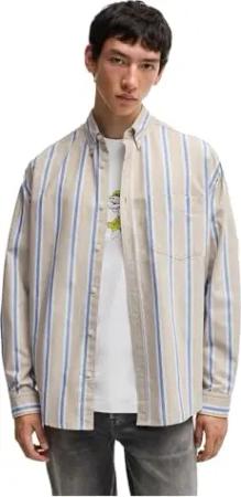 Herren Egalo Oversized Overshirt aus Oxford-Baumwoll-Mix mit Streifen-Muster Blau S