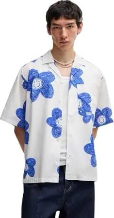 Herren Espino Oversized Hemd aus Popeline mit Quadrate-Print Blau M