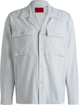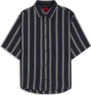 Herren Eralino Gestreiftes Loose-Fit Hemd aus Baumwoll-Mix mit offener Webstruktur Dunkelblau M