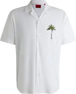 Herren Ellino Relaxed-Fit Hemd aus Baumwolle mit Palmen-Print Natur M