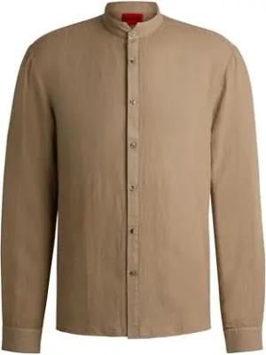 Herren Elvory Slim-Fit Hemd aus Leinen-Canvas Braun XL
