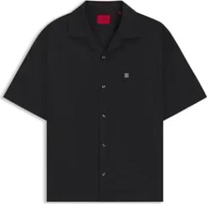 Herren Enaso Oversized Hemd mit Stack-Logo-Aufnäher Schwarz001 S