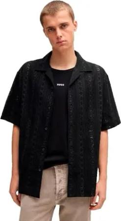 Herren Espino Oversized Hemd aus Baumwolle mit Lochstickerei Schwarz001 M