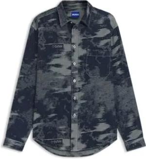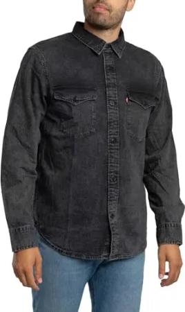 Herren Barstow Western Standard Hemd,Marble Black Denim Rinse,XS