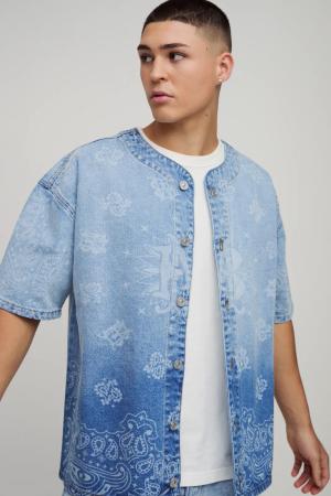 Denim Baseball-Hemd mit Bandana-Print - Blau - S, Blau