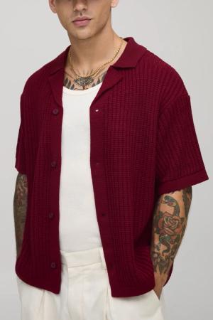 Kastiges geripptes Hemd - Burgund - M, Burgund