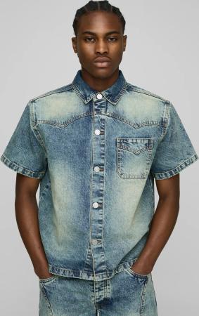 Kastiges schwarzes Denim-Hemd - L, Schwarz