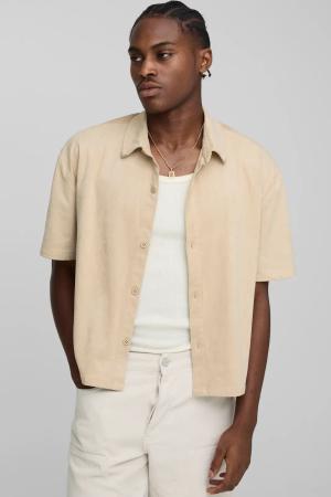 Tall Oversize Hemd mit Kontrast-Naht und halben Ärmeln - Ecru - 2XL, Ecru