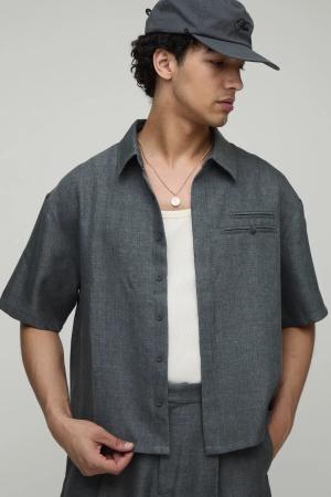 Kurzärmliges strukturiertes Oversize Hemd - Grau - S, Grau