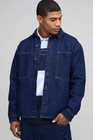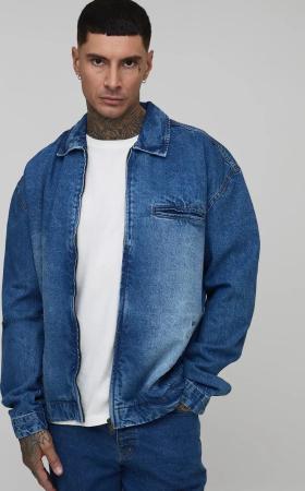 Tall Oversized Boxy Zip Up Denim Overshirt