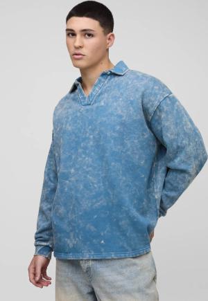 Tall Oversize Rugby-Hemd mit Acid-Waschung - Schwarz - 2XL, Schwarz