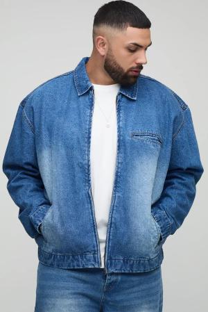 Plus Denim-Overshirt mit Reißverschluss - mid wash - 3XL, mid wash