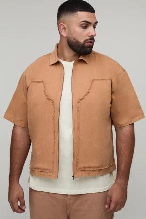 Plus Denim-Overshirt mit Reißverschluss - washed khaki - 3XL, washed khaki
