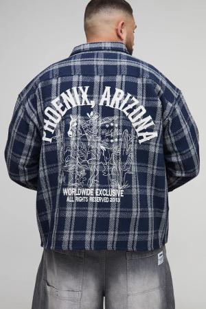 Plus geripptes kariertes Overshirt mit Western Arizona Stickerei - Blau - 2XL, Blau