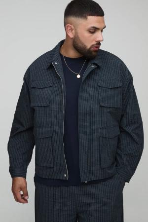 Plus karierte Oversize Ripstop Cargo-Shacket - Blau - 3XL, Blau