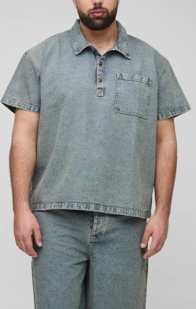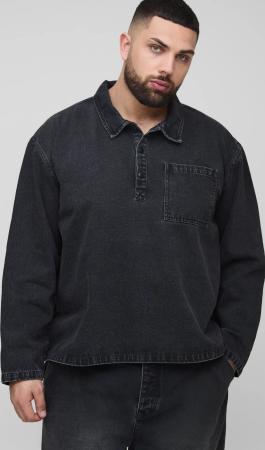Plus Oversize Rugby-Jeanshemd - Grau - XXXL, Grau