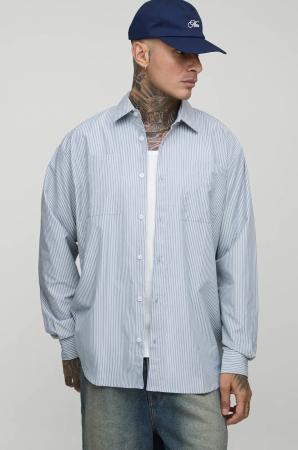 Langärmliges Oversize Hemd mit Streifen - Blau - S, Blau