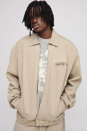 Tall Denim-Overshirt mit Reißverschluss - washed khaki - 2XL, washed khaki